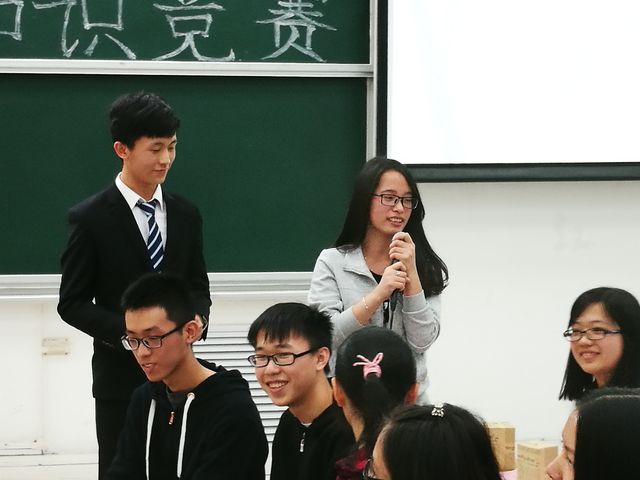 比赛共分为四个环节,分别是集思广益、极限挑战、一站到底与后来居上。比赛在开始便进入了白热化阶段,一道道题目不间断地闪现在屏幕上。选手们各显神通,从容不慢得应对各种难题,观众的热情也因此而不断地升温。在观众互动环节,同学们争先恐后地报名参加,不仅为了能得到精美的小礼品,还为了能给自己心仪的队伍加分。最后的环节可谓最为精彩,此环节将六个队两两捆绑,形成互帮互助的情形;不少队伍因此补了自己的短板,凭此一跃而上,瞬间改变了赛况。