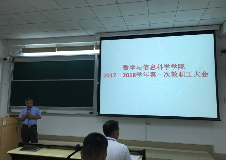 全体教师在文清楼110室召开了新学期全体教师大会,围绕“聚共识、谋发展、抓落实,全面推进高水平大学建设”的主题,曹道明院长、黄志凯书记,以及其他学院领导就自己的分管工作分别作了主题发言。