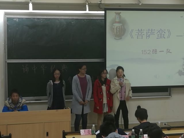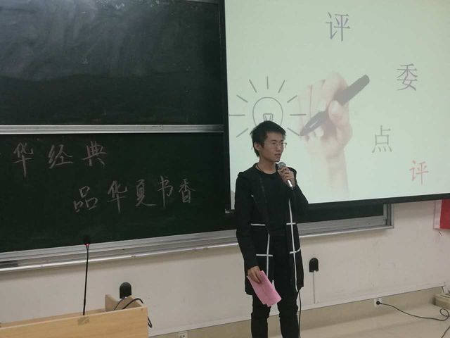 中华经典诵读比赛在文新119举行。参加本次活动的嘉宾有团委书记兼2014级辅导员胡啟岚老师和2016级辅导员何燕惠老师以及团委副书记康子浩、团委副书记庄婷婷、学生会主席陈丹敏和学生会秘书长何菊珍。本次比赛的评委为肖俊婷和于景任。