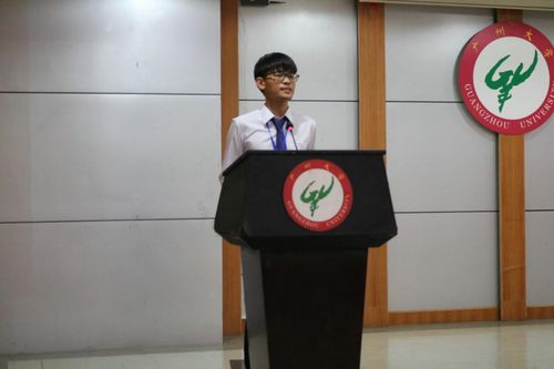 自身优势向上发展。校学生会副主席王策同学代表广州大学学生会致贺词,表示作为新一代广大学子,要不骄不躁,做好学生本分工作。