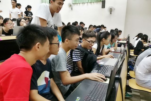 可能同学们一开始有点陌生,在演示时都似懂非懂的点头,但轮到自己动手的时候就不知道该怎么操作了。不过有现场工作人员对有疑问的同学进行解答,帮助他们能够跟上课程的节奏。随着时间的流逝,同学们也逐渐找到了一点感觉,能够自己独立操作Ps。