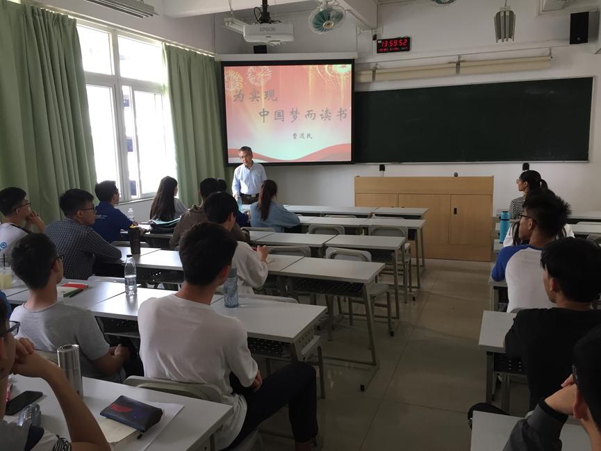 曹道民院长以“为实现中国梦而读书”为题,详细阐述了中国梦的缘起和内涵。他从追寻先贤们探索中国梦的实践开始,介绍了周恩来总理“为中华之崛起而读书”和我国数学家华罗庚的“为了抉择真理,我应当回去!为了国家民族,我应当回去!为了人民服务,我应当回去”、苏步青的“吃苦算得了什么,我甘心情愿,因为我选择了一条正确的道路,这是一条爱国的光明之路啊”、陈省身的“我们的希望是在21世纪看见中国成为数学大国 ”、陈景润“人生的目的是什么”、丘成桐“帮助中国推动数学发展是自己的责任 ”……他希望同学们在探寻中国梦的实践中努力学习,若干年之后在同学们中出现为实现中国梦的数学家,他还就数学专业的学生如何学习成才提出了自己的建议。