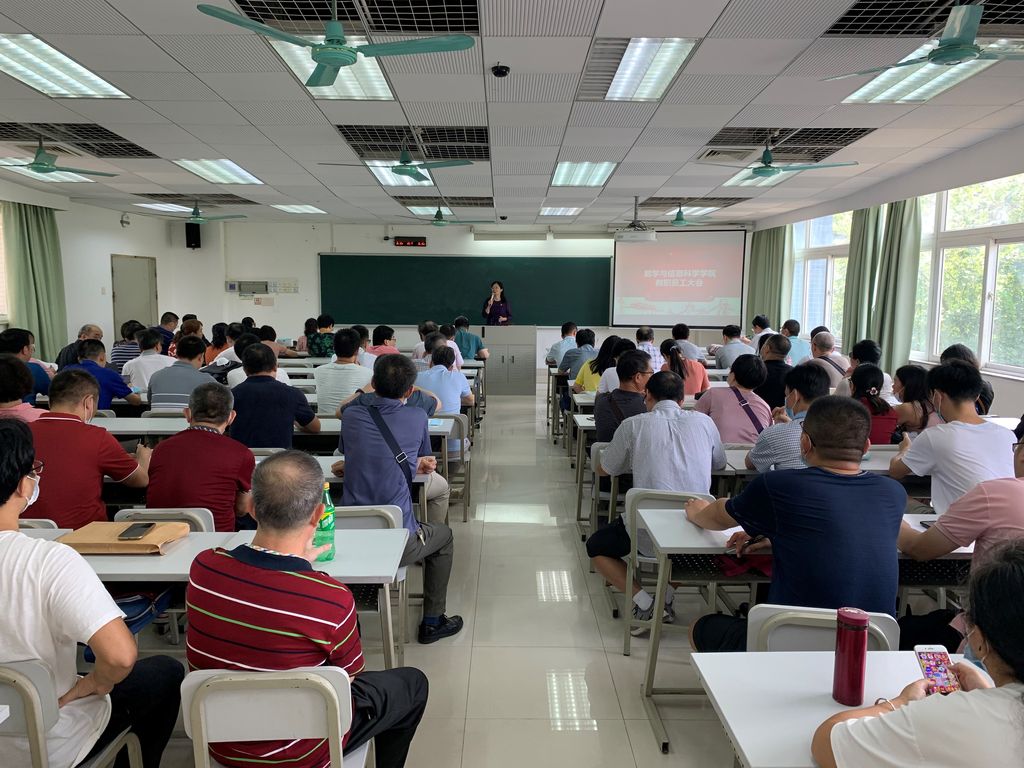 学院党委书记郑美玲传达了校党委三届五次会议暨暑期领导干部学习读书班、2020年纪律教育学习月动员会精神,对全体教职工进行了保密教育和科研经费使用管理廉政风险防范教育,并回顾总结了疫情防控以来,学院在党建、教学、科研和学生思想政治教育、毕业生就业、招生等方面的工作情况及取得的成绩。她表示,在疫情防控期间,全院教职员工坚守工作岗位,坚持立德树人,为学院教学科研和人才培养工作作出了积极贡献,在第36个教师节来临之际,代表学院党政对老师们表示感谢,并祝老师们节日快乐,桃李满天下。