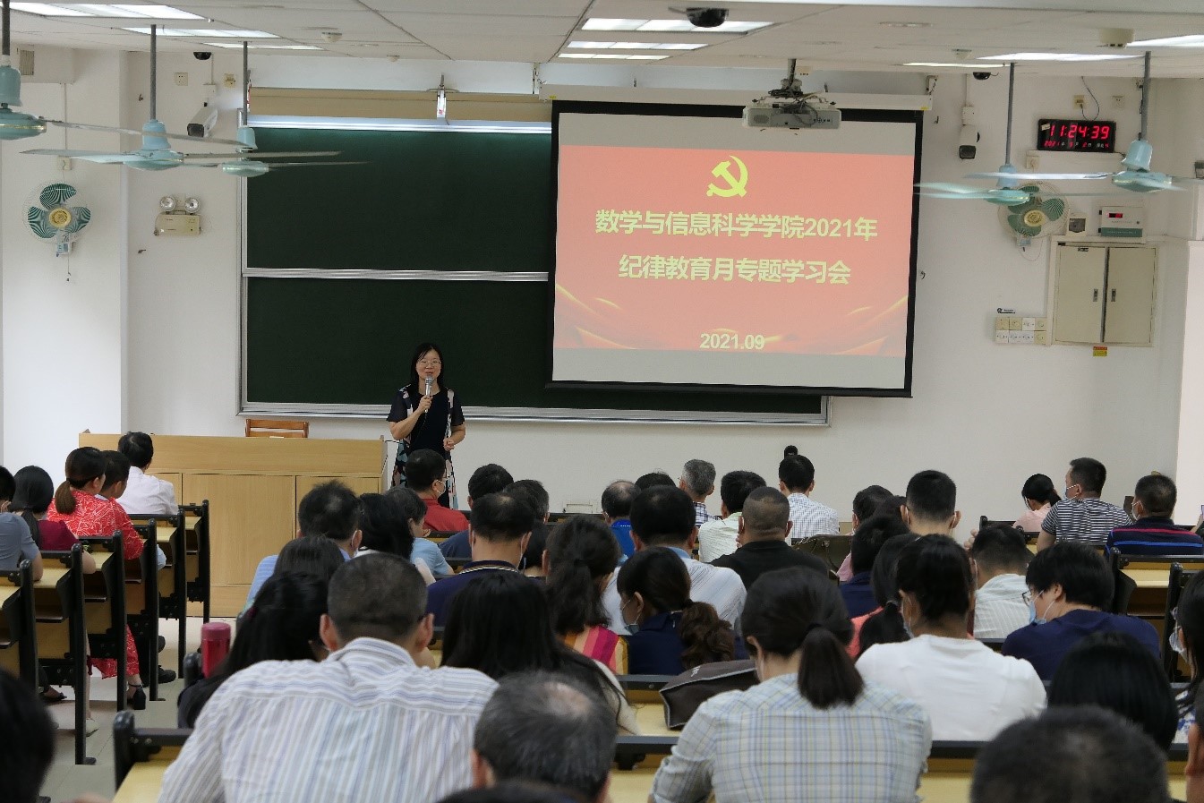 学院党委书记郑美玲同志充分肯定了过去一学年学院在党史学习教育、疫情防控、学科发展、人才培养等方面取得的成绩。同时传达了学校2021年纪律教育学习月动员会会议精神,就学院纪律教育学习月活动作了专题部署,要求全体教职工要以“学党史悟思想,守纪律铸忠诚”为主题,深入学习贯彻习近平新时代中国特色社会主义思想,从学习百年党史中感悟思想伟力,进一步增强“四个意识”、坚定“四个自信”、做到“两个维护”,保持忠诚干净担当政治本色,为学校高水平大学建设提供坚强政治保障。她强调,学院要全面落实立德树人根本任务,坚持人才培养中心地位不动摇,抓好国家一流专业建设,大力推进拔尖创新人才的培养,积极探索学科交叉融合和研究生培养质量提升的有效途径,为学校提高人才培养质量做出数学贡献!